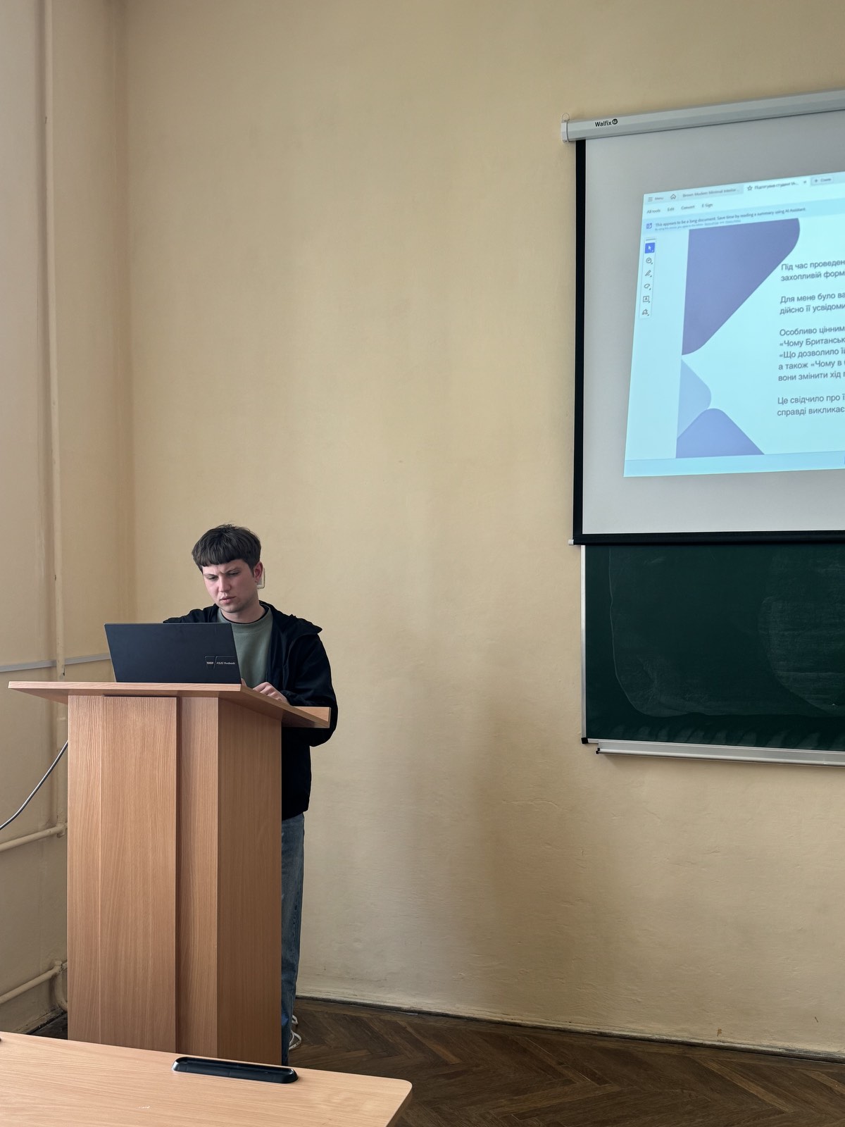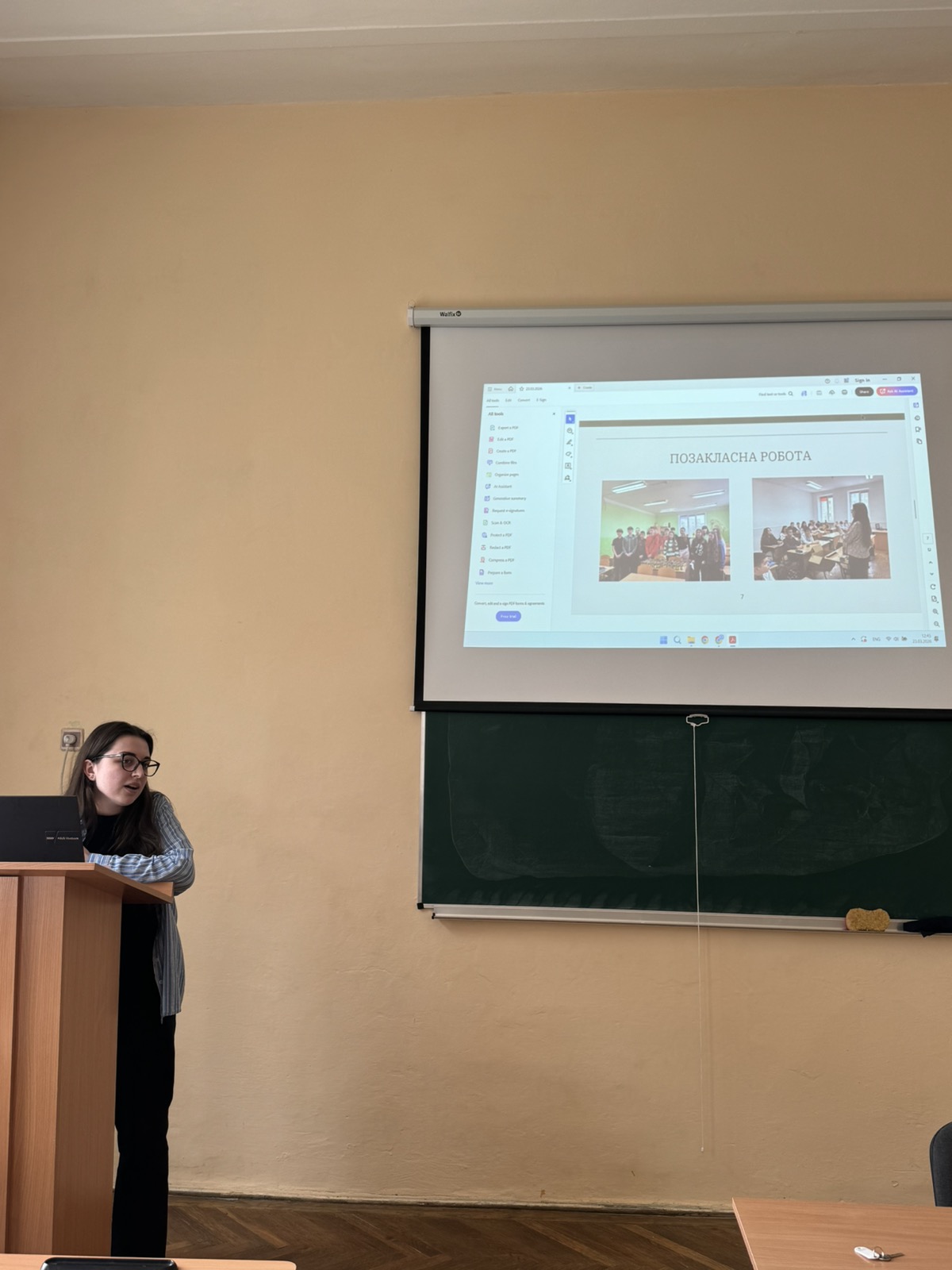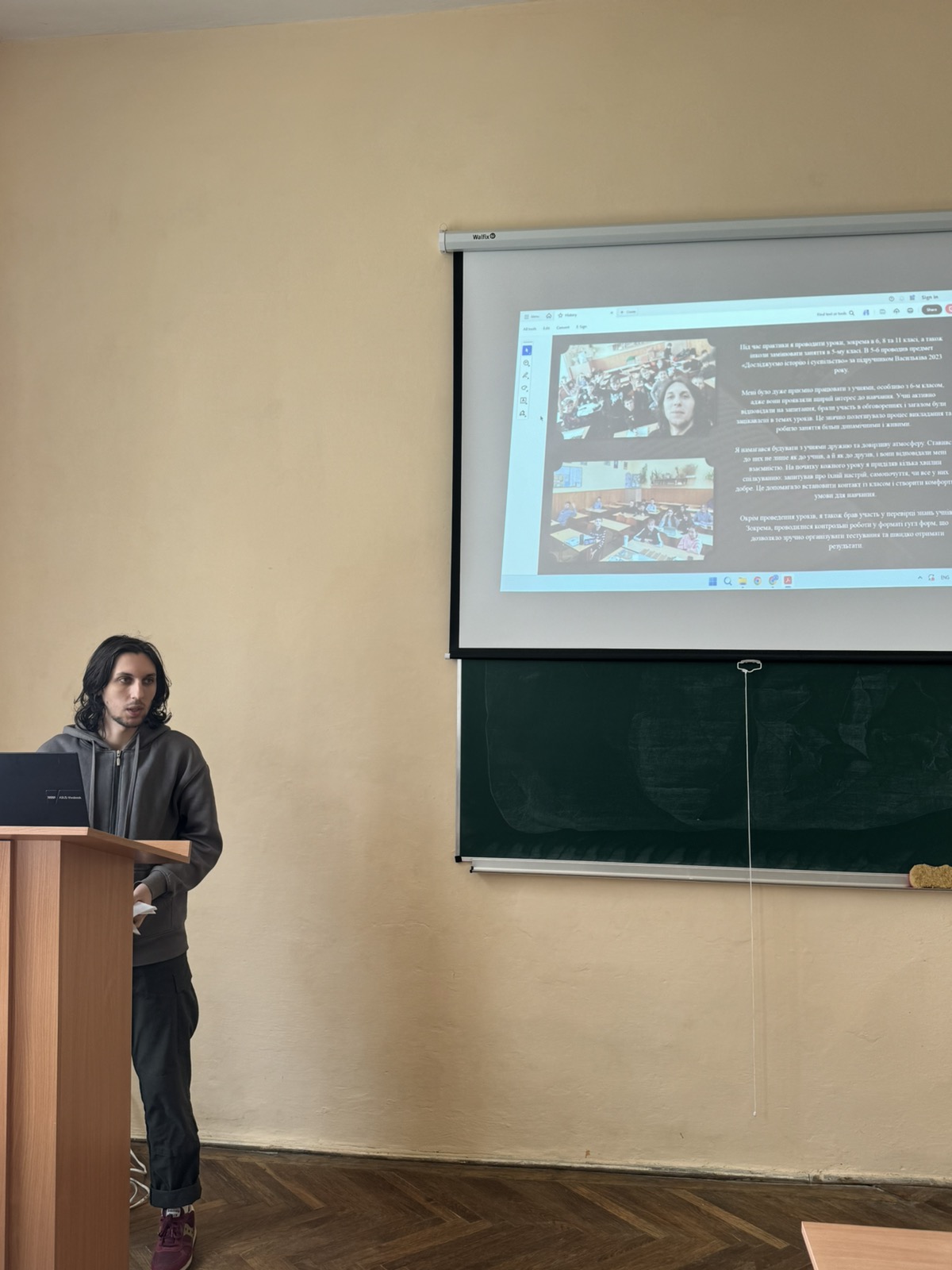 Під час демонстрації звітних мультимедійних презентацій здобувачі вищої освіти відзначили, що на уроках і позакласній роботі застосовували цифрові технології, інтелект-карти, кейс-метод, віртуальні екскурсії, інтерактивні ігри-вікторини, зокрема kahoot.com. Практиканти пропонували для школярів і нестандартні творчі завдання зі створення візуалізації до уроків за допомогою штучного інтелекту.