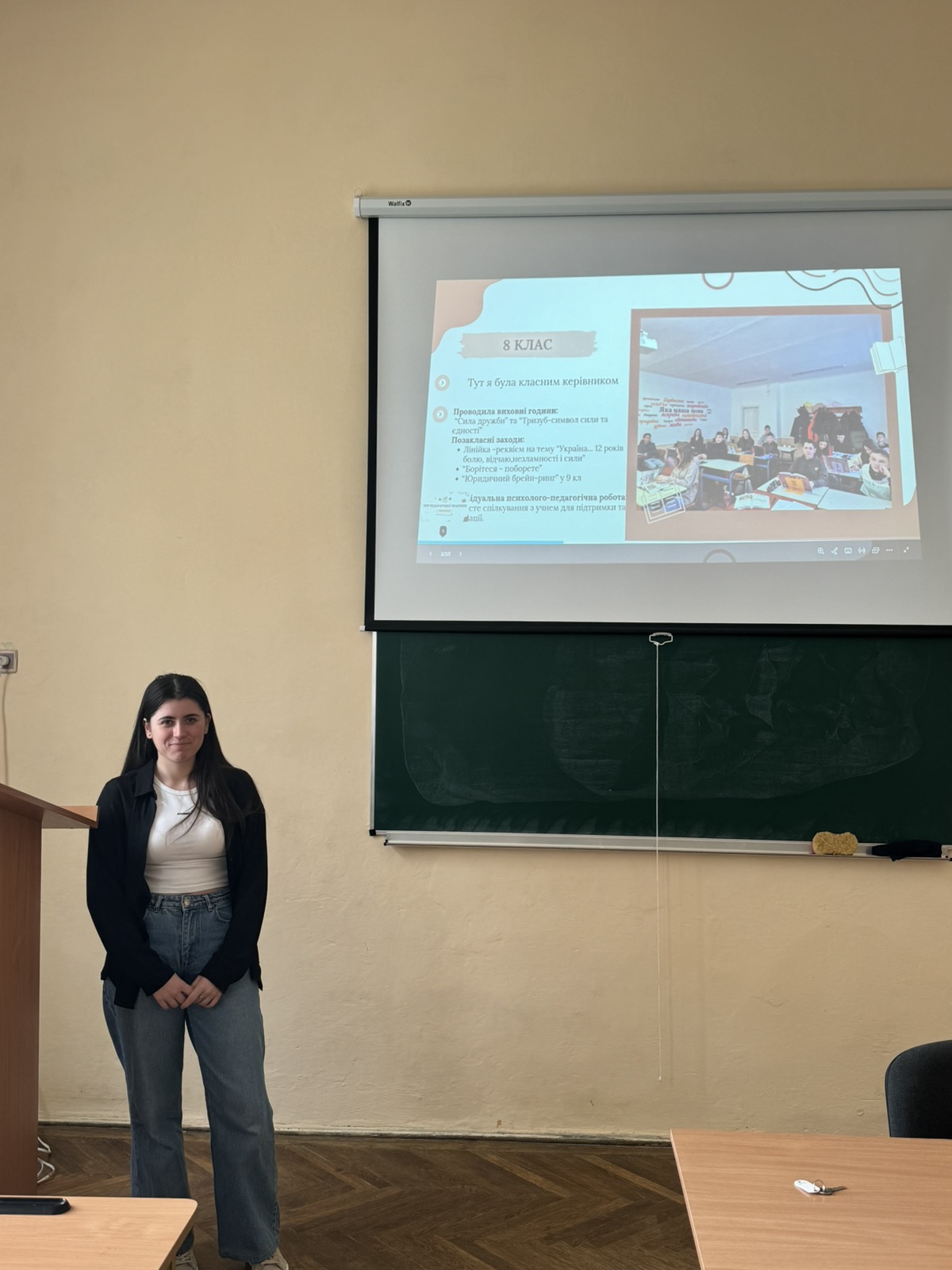 Під час захисту педагогічної практики студенти відзначили, що провели цікаві та змістовні виховні й позакласні заходи, зокрема «День Героїв небесної сотні»; « Україна… 12 років болю, відчаю, незламності…»; «Ангели Майдану»; «Тризуб – символ сили та єдності»; «День єднання»; «День Дружби»; «Фестиваль англійської музики»; «Стоп-булінг»; «Марафон від Лесі до Тараса», «Крим – невід’ємна частина України: історія і право»; «Безпечний інтернет», тощо. Микола Мельник поділився досвідом проведення пізнавальної екскурсії у краєзнавчий музей «Верховина». Вікторія Йосипенко, Юля Васюнець розповіли про проведення у гімназії №10 м. Дрогобича волонтерського заходу «Маленька свічка – велике тепло». Варто зауважити, що студенти провели і профорієнтаційні заходи для учнів дев’ятих-одинадцятих класів.
