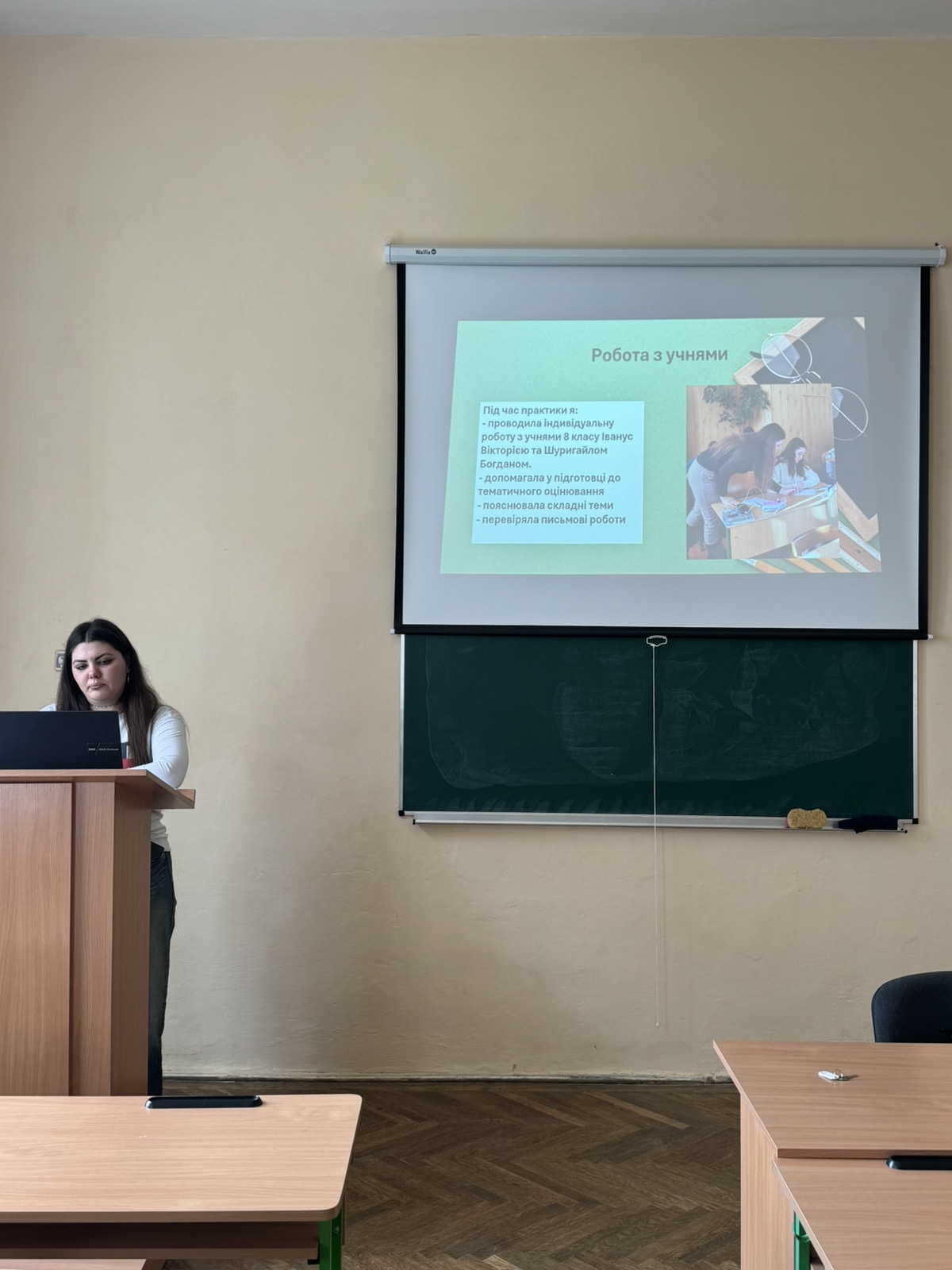 На якісному рівні підготували звітні мультимедійні презентації про практику Яна Баран, Олександр Кастріца, Віталій Чаповський, Вікторія Йосипенко, Юлія Васюнець, Юлія Гірняк, Володимир Кушнір, Микола Мельник, Анна Бучинська, Анастасія Коновал, Вікторія Романова, Богдан Шкільник, Маркіян Сороневич, Анжеліка Пруська, Соломія Ватраль. Прикметно, що більшість студетів-практикантів акцентували, що педагогічна практика їм сподобалась, у них сформувалося стійке переконання, що вони правильно обрали професію.