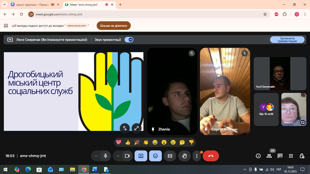 На кафедрі соціальної педагогіки та корекційної освіти відбувся захист виробничої практики здобувачами другого (магістерського) рівня вищої освіти, які навчаються за ООП «Соціальна педагогіка» та «Інклюзивна освіта».