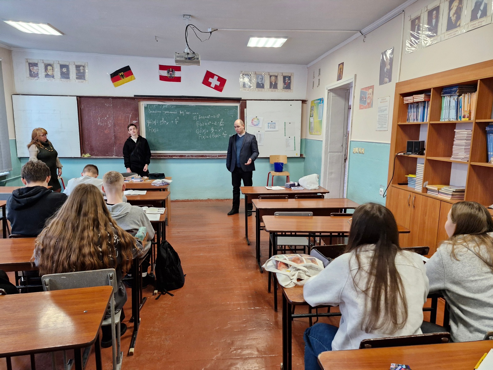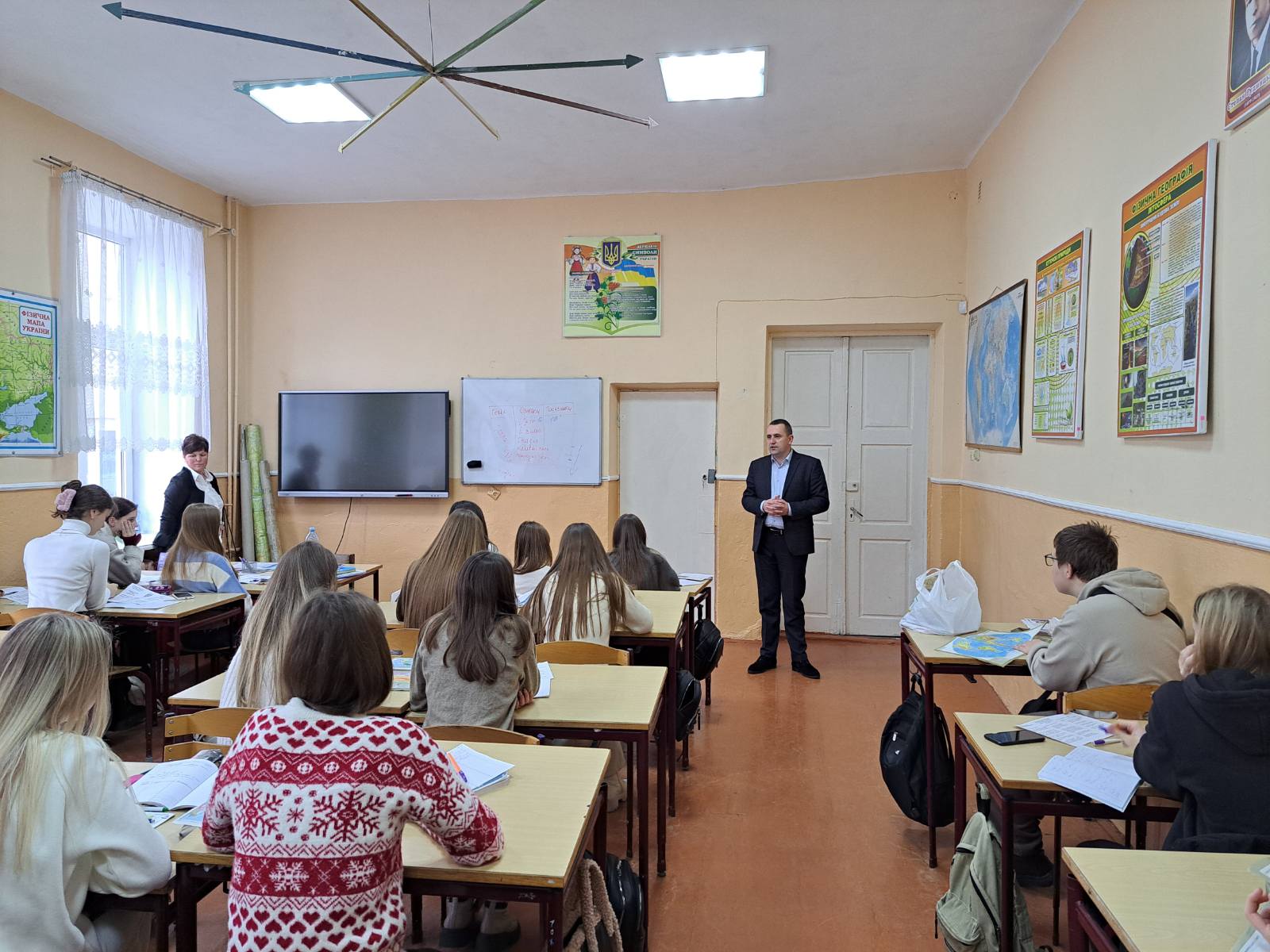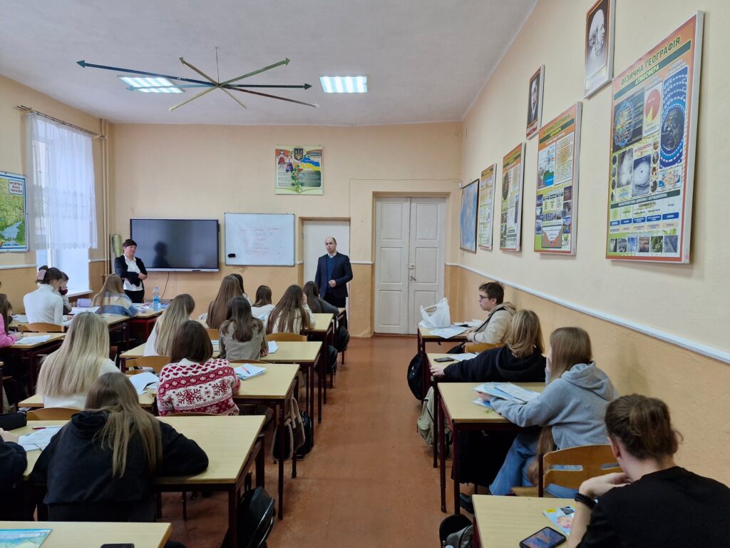 Завідувач кафедри історії України та правознавства професор Василь Ільницький та професор цієї ж кафедри Микола Галів 10 грудня із профорієнтаційною метою зустрілися з учнями 11-х класів Стрийського ліцею імені Героя України Андрія Корчака.