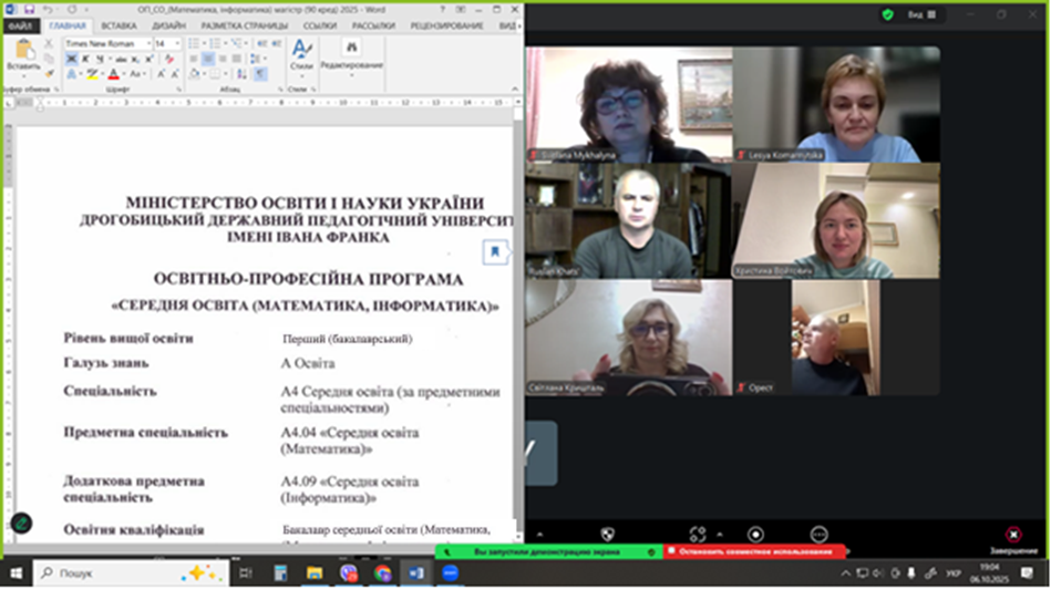 10 та 11 березня 2025 року відбулися зустрічі гарантів освітніх програм, викладачів кафедри математики та економіки факультету фізики, математики, економіки та інноваційних технологій із стейкхолдерами щодо обговорення проектів освітньо-професійних програм «Середня освіта (Математика, інформатика)» підготовки фахівців першого (бакалаврського) та другого (магістерського) рівнів вищої освіти спеціальності Середня освіта (Математика).