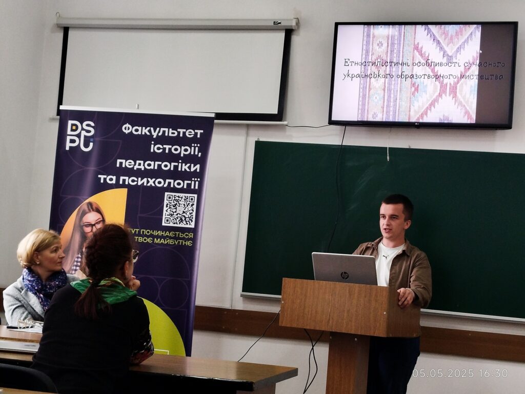 Змістовними та різноплановими були виступи аспірантів кафедри, їхні доповіді викликали жваві дискусії, що сприяли обміну думками та ідеями. Окремо треба відзначити змістовні доповіді студентів, які проявили допитливість та хист до наукової роботи: «Вплив інтернет-культури на етичні цінності молоді (на основі британського кримінально-драматичного міні-серіалу «Юнацтво») – Роман-Владислав Хрунь, студент групи ІГ–2425 M факультету історії, педагогіки та психології; наукова керівниця – доцентка Оксана Зелена; «Історико-етнічні аспекти сучасного мистецтва» – Мєдінє Кадирова, студентка групи О–2226 Б факультету початкової освіти та мистецтва; наукова керівниця – доцентка Тетяна Білан; «Етностилістичні особливості сучасного українського образотворчого мистецтва» – Олег Легкий, студент групи О–2226 Б факультету початкової освіти та мистецтва; наукова керівниця – доцентка Тетяна Білан; «Стилістика ренесансної культури» – Ірина Олійник, студентка групи О–2226 Б факультету початкової освіти та мистецтва; наукова керівниця – доцентка Валентина Дротенко; «Освіта і ринок праці: чи працює інвестиція в жіночий людський капітал в Україні?» – Оксана Комарницька, студентка групи ІГ–2425 M факультету історії, педагогіки та психології; наукова керівниця – доцентка Оксана Зелена.