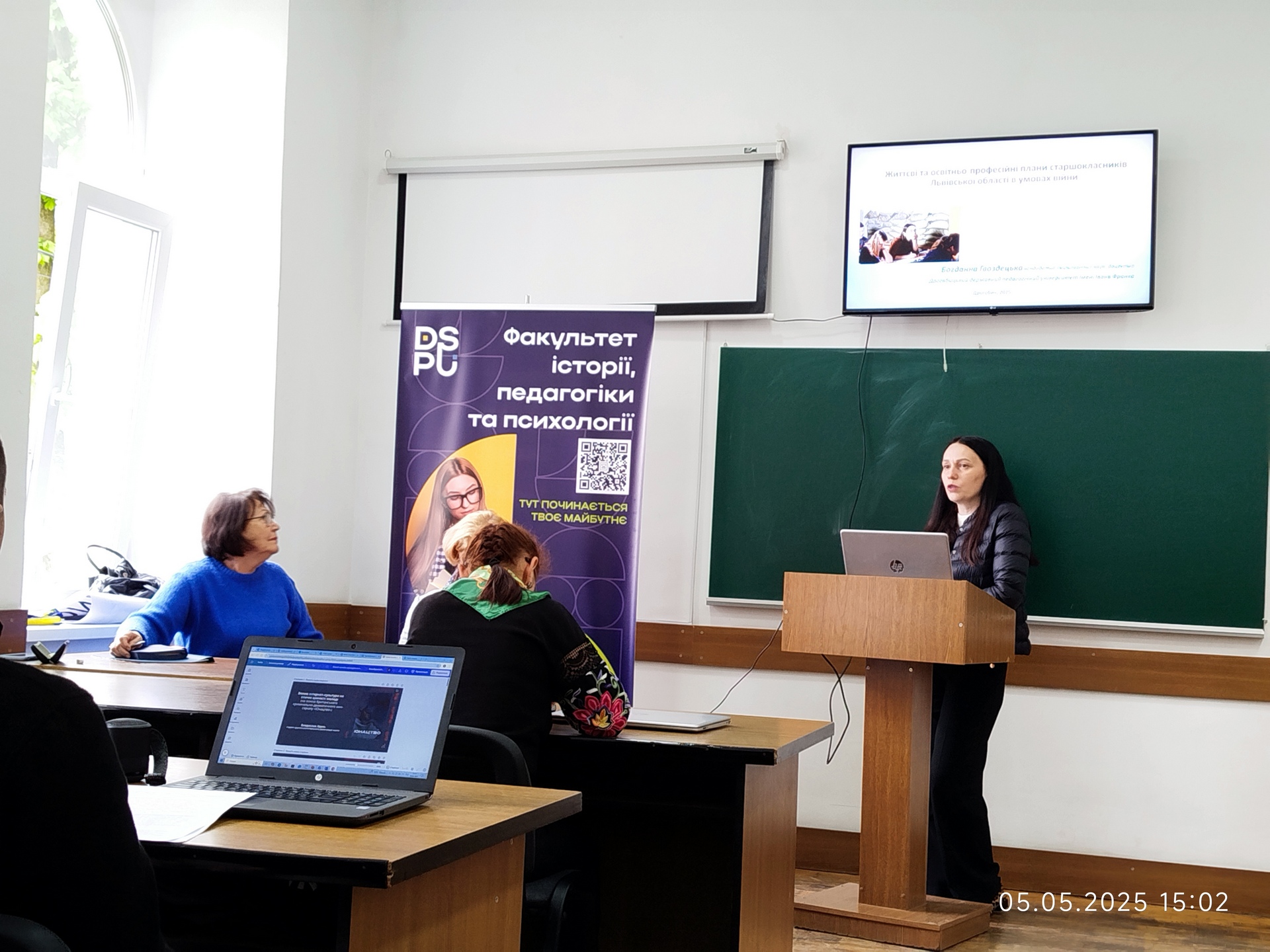 Змістовними та різноплановими були виступи аспірантів кафедри, їхні доповіді викликали жваві дискусії, що сприяли обміну думками та ідеями. Окремо треба відзначити змістовні доповіді студентів, які проявили допитливість та хист до наукової роботи: «Вплив інтернет-культури на етичні цінності молоді (на основі британського кримінально-драматичного міні-серіалу «Юнацтво») – Роман-Владислав Хрунь, студент групи ІГ–2425 M факультету історії, педагогіки та психології; наукова керівниця – доцентка Оксана Зелена; «Історико-етнічні аспекти сучасного мистецтва» – Мєдінє Кадирова, студентка групи О–2226 Б факультету початкової освіти та мистецтва; наукова керівниця – доцентка Тетяна Білан; «Етностилістичні особливості сучасного українського образотворчого мистецтва» – Олег Легкий, студент групи О–2226 Б факультету початкової освіти та мистецтва; наукова керівниця – доцентка Тетяна Білан; «Стилістика ренесансної культури» – Ірина Олійник, студентка групи О–2226 Б факультету початкової освіти та мистецтва; наукова керівниця – доцентка Валентина Дротенко; «Освіта і ринок праці: чи працює інвестиція в жіночий людський капітал в Україні?» – Оксана Комарницька, студентка групи ІГ–2425 M факультету історії, педагогіки та психології; наукова керівниця – доцентка Оксана Зелена.