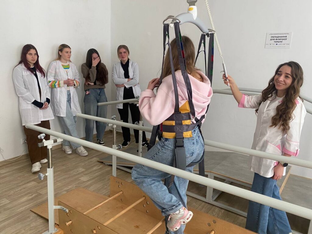 Окрему увагу приділили підбору допоміжних засобів, де учасники детально розбирали тонкощі вибору асистивних технологій мобільності. Особливий акцент було зроблено на індивідуальному налаштуванні ходунків та милиць відповідно до антропометричних і фізичних особливостей людини. Завершився захід інтенсивним практичним тренінгом, під час якого кожен першокурсник мав змогу особисто протестувати допоміжні засоби. Це дозволило майбутнім фахівцям краще зрозуміти відчуття пацієнта та навчитися надавати чіткі й зрозумілі інструкції щодо їх безпечного використання.