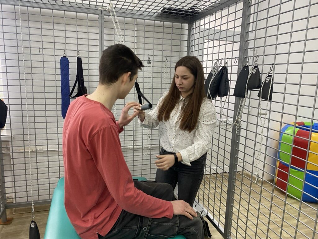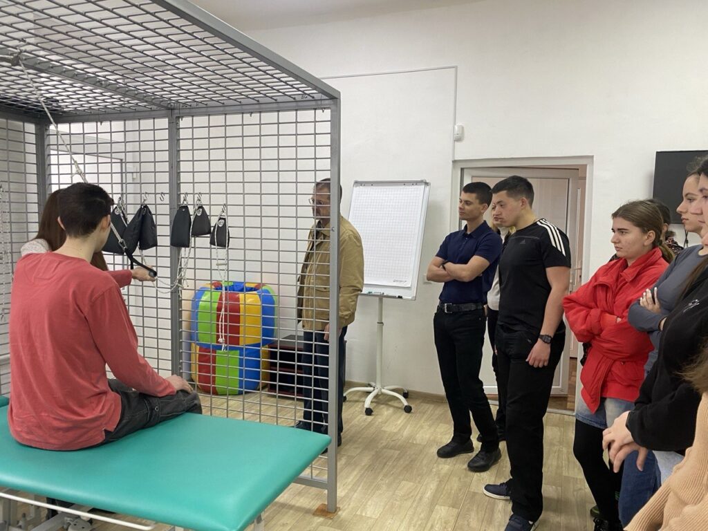 Під час заняття студенти отримали унікальну можливість поєднати теоретичну підготовку з реальним клінічним досвідом. Основна увага була зосереджена на демонстрації сучасних методик фізичної терапії та роботі зі спеціалізованим реабілітаційним обладнанням, зокрема підвісними системами, що є критично важливим для відновлення рухових функцій пацієнтів. Олександра Снядецька детально розібрала алгоритми оцінювання фізичного стану пацієнта, особливості побудови терапевтичного плану в умовах амбулаторної допомоги та продемонструвала техніки правильної взаємодії фахівця з пацієнтом.