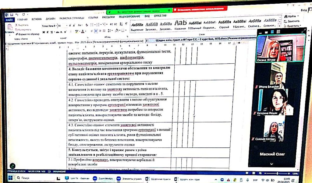 24 квітня 2025 року на кафедрі фізичної терапії, ерготерапії та здоров’я відбулося навчання клінічних супервізорів, які є наставниками на клінічних практиках студентів першого (бакалаврського) та другого (магістерського) рівнів вищої освіти спеціальності 227 «Терапія та реабілітація».