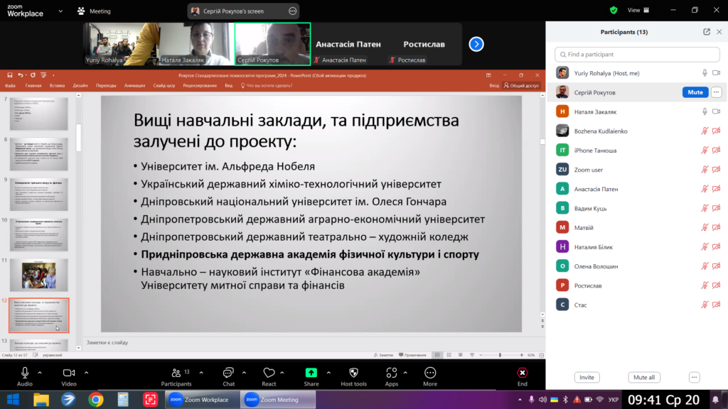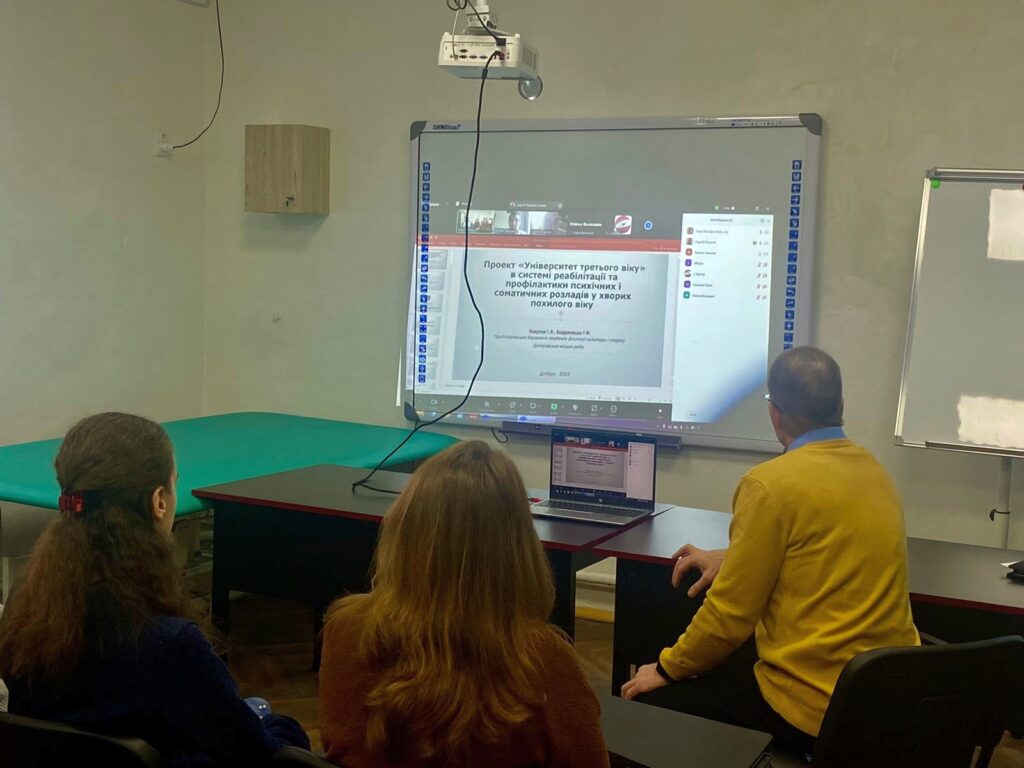 Кандидат медичних наук, доцент, завідувач кафедри фізичної терапії, ерготерапії Придніпровської державної академії фізичної культури і спорту – Сергій РОКУТОВ виступив з відкритою лекцією для студентів спеціальності 227 «Терапія та реабілітація» кафедри фізичної терапії, ерготерапії та здоров’я ДДПУ ім. І.Франка «Університет третього віку» в системі реабілітації та профілактики психічних і соматичних розладів у хворих похилого віку». Придніпровська державна академія фізичної культури і спорту, як заклад вищої освіти, залучений до реалізації проекту.