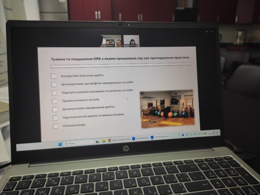 2-3 грудня 2024 року на кафедрі фізичної терапії, ерготерапії та здоров’я відбувся захист звітів за результатами проходження клінічної практики студентами ІІІ курсу спеціальності 227 «Фізична терапія, ерготерапія, ОПП «Ерготерапія» (клінічна практика з ерготерапії при психосоціальних розладах), ІІІ курсу спеціальності 227 «Фізична терапія, ерготерапія», ОПП «Фізична терапія, ерготерапія» (клінічна практика з фізичної терапії та ерготерапії при порушенні діяльності опорно-рухового апарату) та ІІ курсу магістерського рівня вищої освіти спеціальності 227 «Терапія та реабілітація», спеціалізація 221.1 «Фізична терапія» (клінічна практика з фізичної терапії при травмі, політравмі та захворюваннях опорно-рухового апарату).